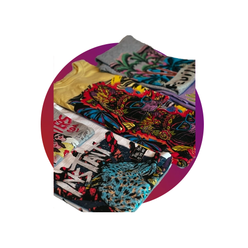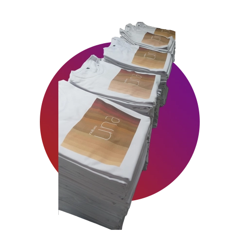 Imprimimos de forma directa sobre fibras naturales utilizando tintas con compuestos biodegradables aptos para uso infantil con certificación OEKO-TEX.